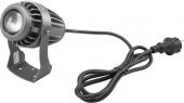 | Power supply: | 100-240 V AC, 50/60 Hz | | Power consumption: | 10 W | | IP classification: | IP65 | | Protection class: | Protection class I | | Power connection: | Fixed power supply cord with safety plug | | Cable construction: | 3 x 1.0 mm² H05RN-F | | Cable length: | Approx. 1 m | | Lamp type: | LED lamp | | LED type: | 1 x 10 W high-power blue (B) | | Cooling: | Passive convection cooling | | Control: | Plug and play | | Beam angle (1/2 peak): | 4° | | Beam angle (1/10 peak): | 6° | | Illuminance in Lux (lx): | 1m: 3057 lx, 3m: 592 lx, 6m: 154 lx | | Housing color: | Grey | | Attachment system: | Mounting bracket | | Material: | Metal | | Dimensions: | Width: 10.5 cm Depth: 15 cm Height: 14.7 cm | | Weight: | 0.74 kg | | Noise classification: | Class 0 (no noise at all) | | Mounting bracket | | | Diameter mounting holes: | 3 x Ø6mm | | Material: | Metal, 2 mm |