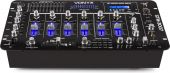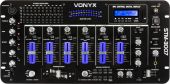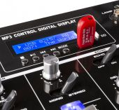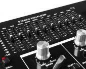 |  | A full featured 6-channel 19" professional mixer coming with MP3 player with BT for streaming your audio to the mixer. Featuring also illuminated channelfaders, 10-Band graphic stereo EQ, microphone equalizer and talkover, 8 sound effects, headphone output on which any channel can be cued and many more features. The perfect solution in many applications such as discos, clubs, bars, at home studios etc. - BT receiver for streaming audio