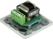 Mountable PA volume controller with 24 V emergency priority relay Einbau-Lautstärkesteller mit 24-V-Pflichtempfangsrelais - Audio transformer for 100 V line technique