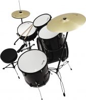 - 1 x bass-drum, 1 x snare-drum, 1 x floortom, 2 x tom tom, 1 x key, 2 x drumstick, 3 x stand, 3 x cymbal, 1 x seat