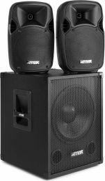 Lækkert lille sæt med 2 styk 8" tophøjttalere og 1 styk 12" subwoofer MX700 er et omfattende lydsett designet for maksimal ytelse og overlegen lydkvalitet. Den 12" subwooferen leverer 400W av bass og passer perfekt til den klare og gjennomsiktige lyden til de 2x 150W 2-veis satellitt-høyttalerne. MX700-settet er egnet for mobile DJs, karaoke-show, drive-in-show, presentasjoner osv. - 12" 400W Aktiv subwoofer