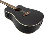 | Battery: | 1 x 9.0 V E block 6F22 zinc carbon built-in | | Pickup: | 1 x piezo with Pre-Amp and Tuner | | Version: | Right hand version | | Neck: | Nato, Fingerboard: walnut 20 frets | | Body: | 4/4 dreadnought-form Sapele | | Scale length: | 650 mm | | Bridge: | Maple | | Number of strings: | 6 | | Top: | Spruce | | Hardware: | Chromium-plated | | Color: | Black | | Weight: | 2.30 kg |  |  |  |  | |