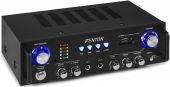 OBS: Vi har kun 2 stk. af denne vare. The Fenton AV100BT is a versatile 2x 50W HiFi amplifier that leviers the perfect sound for your home theatre system. Another handy feature of this compact HiFi amplifier is the integrated USB/SD media player that allows you to play your favourite MP3 songs directly from a USB or SD Card. Featuring a USB port, BT, Bass/Treble and Echo control, two microphone inputs, forced cooling, etc. Also perfect for applications as Karaoke and background music. - 2x 50W HiFi amplifier