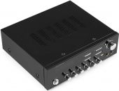 Product colour | Black | Playback options | BT streaming, USB, Line input, Microphone (input) | Input connections | 6.3mm Jack, RCA | Output channels | 2 | Output power | 120W | Output power: @ 8 Ohm per channel | 60W | Impedance | 4 Ohm, 8 Ohm | Input level: Line | 250mV, 47 kOhm | Power supply | 220-240VAC 50Hz | Dimensions (L x W x H) | 280 x 280 x 89mm | Weight (kg) | 3,00 | pdf