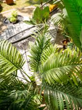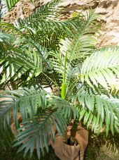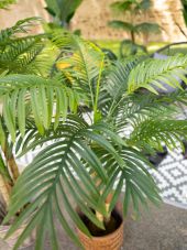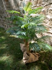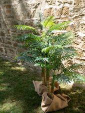 | Trunk: | 2 x artificial trunk | | Setup: | Shapeable | | Standing/fixation: | Gardening pot covered with moss | | Color: | Green | | Foliage: | 19 fronts Material: plastic | | Decor style: | Tropics; mediterranean flair | | Season: | Spring; summer | | Dimensions: | Length: 24 cm Width: 24 cm Height: 120 cm | | Weight: | 3.70 kg |