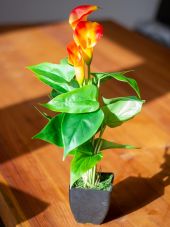 | Standing/fixation: | Design planter covered with moss | | Color: | Orange | | Foliage: | Material: EVA soft plast | | Flowers: | Pieces: approx. 3 pc/pcs Color: orange P(material: )EVA soft plast | | Decor style: | Woods and meadows; houseplant | | Dimensions: | Height: 43 cm | | Weight: | 0.34 kg |