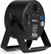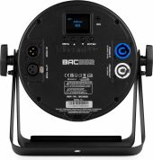 The beamZ BAC3 series is series of compact aluminium LED ProPars, developed according to the latest LED technology. The combination of high-power LEDs built into an attractive cast aluminium housing ensures highly efficient heat dissipation. This eliminates the need for an internal fan, making this Par absolutely silent in operation. The OLED display with 4 button LED menu allows for easy access to the functions including DMX, master/slave, sound activation and the stand alone function. Equipped with P-Con in/out and XLR 3-pin in/out connectors for daisy chaining multiple units together. Magnet in front for optional accessories: Filter 40° (150.832), Barndoor (150.833)