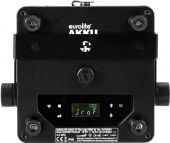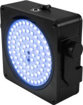 | Power supply: | 100-240 V AC, 50/60 Hz 12.6V DC 2500 mA | | IP classification: | IP65 | | Protection class: | Protection class III | | Power connection: | Mains input via coaxial power connector (M) mounting version power supply cord with Euro plug (provided) Battery/battery pack | | Battery pack type: | 2 x lithium ion 11.1 V, 2600 mAh, 28.86 Wh | | Battery pack: | Battery operation up to 16h depending on program used Recharging time 4h | | Lamp type: | LED lamp | | LED type: | 81 x 0.2 W SMD 5050 4in1 QCL RGBW (homogenous color mix) | | Flash rate: | 1 - 23 Hz | | DMX channels: | 3; 4; 6; 8; 10 | | Cooling: | Passive convection cooling | | Control: | Master/slave function; IR remote control; QuickDMX; stand-alone; sound to light via microphone | | Preprogrammed in: | Light Captain; EASY SHOW 1; EASY SHOW 2; EASY SHOW 3; Light´J; Colorchief | | Projection: | Flicker-free | | Carrier frequency: | 2.4 GHz | | Beam angle (1/10 peak): | 120° | | Housing color: | Black | | Display type: | LCD display | | Dimensions: | Length: 17.2 cm Width: 13.8 cm Depth: 6.4 cm | | Weight: | 1.60 kg | | Noise classification: | Class 0 (no noise at all) | | Remote control | | | Battery: | 1 x button cell 3.0 V CR2032 lithium manganese built-in | | Legal specifications | | | Special product: | Not designed for household room illumination | | Intended use: | Show effect lighting |