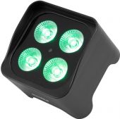 | Power supply: | 5V | | IP classification: | IP20 | | Protection class: | Protection class III | | Power connection: | Battery/battery pack Mains input via USB C (W) mounting version | | Battery pack type: | 3 x lithium ion 3.6 V, 2600 mAh, 9.36 Wh | | Battery pack: | Battery operation up to 9h depending on program used Recharging time 5h | | Lamp type: | LED lamp | | LED type: | 4 x 4 W 4in1 QCL RGBW (homogenous color mix) | | Flash rate: | 1 - 28 Hz | | Cooling: | Passive convection cooling | | Control: | IR remote control; stand-alone; sound to light via microphone | | Projection: | Flicker-free | | PWM frequency: | 15000 Hz | | Beam angle: | 18° | | Beam angle (1/2 peak): | 18° | | Beam angle (1/10 peak): | 38° | | Housing color: | Black | | Display type: | 4 digit 7-segment LED display | | Dimensions: | Length: 11 cm Width: 11 cm Height: 12 cm | | Weight: | 0.73 kg | | Noise classification: | Class 0 (no noise at all) | | Legal specifications | | | Special product: | Not designed for household room illumination | | Intended use: | Show effect lighting |