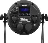 | Power supply: | 100-240 V AC, 50/60 Hz | | Power consumption: | 110 W | | IP classification: | IP65 | | Protection class: | Protection class I | | Power connection: | Mains input via IP T-Con (M) power supply cord with safety plug (provided) | | Power output: | IP T-Con (F) mounting version | | Lamp type: | LED lamp | | LED type: | 1 x 200 W COB (chip-on-board) warm white (WW) | | DMX channels: | 1; 2; 4 | | DMX input: | 3-pin XLR (M) mounting version IP | | DMX output: | 3-pin XLR (F) mounting version IP | | Cooling: | Passive convection cooling | | Control: | Stand-alone; DMX; QuickDMX; IR remote control; master/slave function | | Preprogrammed in: | Light Captain; Colorchief | | Projection: | Flicker-free | | Beam angle: | 30° | | Beam angle (1/2 peak): | 30° | | Beam angle (1/10 peak): | 60° | | Color temperature: | 3000K | | Color rendering index (CRI): | 93 Ra | | Housing color: | Black | | Attachment system: | Omega bracket Double bracket | | Display type: | LCD display | | Material: | Aluminum casting | | Dimensions: | Width: 25.1 cm Depth: 27.2 cm Height: 32.7 cm Diameter: Ø 18.2 cm | | Weight: | 4.50 kg | | Noise classification: | Class 0 (no noise at all) | | Mounting bracket | | | Diameter mounting holes: | 2 x Ø18mm; 1 x Ø11mm | | Material: | Metal, 3 mm | | Remote control | | | Battery: | 1 x button cell 3.0 V CR2025 lithium manganese built-in | | Legal specifications | | | Special product: | Not designed for household room illumination | | Intended use: | Show effect lighting |