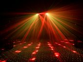 2 laser diodes project hundreds of red and green laser beams
