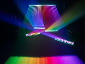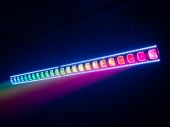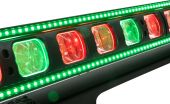 Motorized tiltable LED light effect bar with 12 high-performance LEDs, two zoom ranges from 2° to 28° and 164 effect LEDs