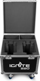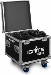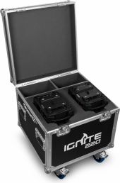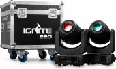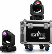 A complete kit of 2 IGNITE220 moving heads supplied in a solid and rugged flightcase. The IGNITE220 is a spot moving head with a linear motorized zoom, equipped with a powerful ultra-bright 220 Watt LED according to the latest technology. This moving heads also features 2 gobo wheels and a 3-facet rotating prism to create stunning 8-color aerial effects. The beam angle of 12 degrees makes this the ideal fixture to use for gobo projection and sharp beam figures. The IGNITE220 is suitable for DMX control in 3 different channel modes, master/slave or stand-alone operation. It includes several show presets, strobe and dimmer functions, and a built-in microphone for sound activation. Perfectly useable for many events and club installs.
