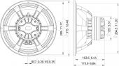 | Power: | Program: 700W LF Rated: 80W AES HF Rated: 350W AES LF Program: 160W HF | | Frequency range: | 45 - 3500 Hz LF 600 - 18000 Hz HF | | Sensitivity: | 99,5 dB LF; 105,5 dB HF | | Impedance: | 8 ohms LF; 8 ohms HF | | Speaker: | Woofer (12") approx. 30 cm with neodymium magnet with dual demodulating rings Basket material: aluminum Voice coil lows (3") approx. 8 cm Diaphragmmaterial: Titanium Compression tweeter highs (1.4") approx. 3.6 cm Voice coil compression tweeter highs (3") approx. 8 cm | | Weight: | 4,75 kg |  |  |  |  | |