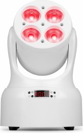 | Product colour | White | | Colour temperature | 2500K - 8000K | | Light source | 4-in-1 LED | | Colours | Red, Green, Blue, White | | LED power (single LED) | 20W | | Quantity of LEDs | 4 | | Beam angle | 23° | | Field angle | 39° | | Illuminance | 11.336 lx @ 1m | | Head movement: Pan | 540° | | Head movement: Tilt | 270° | | Flash rate per second | 1 - 30Hz | | Modes | Automatic programs, DMX, Master/Slave | | RDM | Yes | | DMX channels | 19, 20 | | DMX connection | 3-pin XLR | | Display | LED | | IP rating | IP20 | | Cooling | Temperature controlled fan | | Power plug | IEC | | Power consumption | 1.665 - 0.782A | | Power supply | 100-240VAC 50/60Hz | | Dimensions (L x W x H) | 170 x 170 x 240mm | | Weight (kg) | 2,84 | | Included accessories | Mounting bracket, Power cable | pdf
