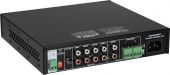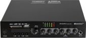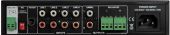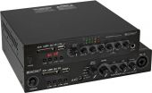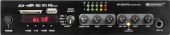 | Power supply: | 100-240 V AC, 50/60 Hz | | Power consumption: | 8 W | | Power connection: | Mains input via IEC connector (M) mounting version power supply cord with safety plug (provided) | | Frequency range: | 20 - 20000 Hz | | S/N ratio: | >100 dB | | THD: | <0.1 % at 1 kHz | | Impedance: | Input: 10 kOhm , unbal. Input: 20 kOhm , bal. | | Display type: | 4 digit 7-segment LED display | | Tuner frequency range: | FM 87-108 MHz | | Control elements: | Source selector, level control, tone control | | Status LED: | Level meter, phantom power | | Connections: | Input: antenna via Belling-Lee (M) Input: line via 4 x RCA (F) mounting version Input: microphone via 1 x 6.3-mm-jack (bal.) Output: line via 1 x stereo RCA Output: line via 2 x screw plug-in terminal | | Equalizer: | Master: 1 x 2-band tone control stereo 1 x 2-band tone control | | Input sensitivity: | 1 V | | Max. level: | Input: microphone -11 dBu Input: line +14 dBu Output: +22 dBu | | Material: | Metal | | Color: | Black | | Housing design: | Desktop console housing (19") 48.3 cm rack installation possible | | Dimensions: | Width: 21.5 cm Depth: 24 cm Height: 4.4 cm | | Weight: | 1.70 kg | | Remote control | | | Battery: | 1 x button cell 3.0 V CR2025 lithium manganese built-in | | Audio player | | | Control: | Bluetooth; IR remote control | | Audio player: | USB + SD + Bluetooth + FM radio | | Carrier frequency: | 2.4 GHz | | Music format: | MP3; WMA; WAV | | Available storage media: | USB devices/SD cards max. 32GB (FAT 16/32) |