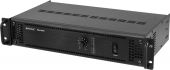 | Power supply: | 230 V AC, 50 Hz | | Power consumption: | 480 W | | Protection class: | Protection class I | | Output power: | 240 W RMS | | Power connection: | Fixed power supply cord with safety plug | | Device fuse: | 5 x 20 mm, T 5 A fuse replaceable | | Frequency range: | 60 - 16000 Hz | | S/N ratio: | >90 dB | | THD: | <0.5 % at 1 kHz | | Impedance: | 4-16 ohms; public address systems 100V; Public address systems 70V | | Housing color: | Black | | Circuitry: | Class AB | | Control elements: | Power switch, level control | | Controls: | Softstart; overheat; overload; short-circuit; DC voltage | | Status LED: | Level meter, power, fault, clip | | Connections: | Input: line via 1 x 6.3 mm jack socket (mono) mounting version Input: line via 1 x 3-pin XLR 0.8 V Output: line via 1 x 6.3 mm jack socket (mono) mounting version Output: line via 1 x 3-pin XLR | | Housing design: | (19") 48.3 cm rack installation 2 U | | Dimensions: | Width: 48.3 cm Depth: 38.5 cm Height: 9.2 cm | | Weight: | 6.55 kg |