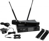 | Type: | Wireless set | | Range: | Range up to 60m with line-of-sight | | Frequency band: | UHF 823 - 832 MHz; UHF 863 - 865 MHz | | Switching bandwidth: | 11 MHz | | Parallel mode: | Max. 24 transmitter in 2 bands | | Frequency selection: | 120 frequencies automatically scannable In 10 groups | | Weight: | 1.74 kg | | Receiver | | | Power supply: | 100-240 V AC, 50/60 Hz 12V DC 1000 mA | | Power consumption: | 2.2 W | | Protection class: | Protection class III | | Power connection: | Mains input via coaxial power connector (M) mounting version power supply cord with AC adapter included | | Number of channels: | 1 | | S/N ratio: | >80 dB | | THD: | <0.5 % at 1 kHz | | Diversity: | True diversity | | Latency: | < 3 ms | | Modulation: | FM | | Housing color: | Black | | Display type: | Multicolor TFT display | | Display: | Frequency , goup , channel , RF signal level; AF audio level , Mute | | Control elements: | Level control, power switch, encoder, menu, sync button | | Connections: | Input: antenna via 2 x BNC (F) Output: microphone via 1 x 3-pin XLR (M) mounting version Output: microphone via 1 x 6.3 mm plug (unbal.) | | Equalizer: | Graphic equalizer 7-band | | Material: | Metal | | Housing design: | Desktop console housing (19") 48.3 cm rack installation possible 1 U | | Mounting depth: | 21 cm | | Dimensions: | Width: 20.5 cm Depth: 21 cm Height: 4.4 cm | | Microphone | | | Power supply: | 3V DC 130 mA | | Capsule type: | Dynamic Size: Ø 25.4 mm | | Polar pattern: | Cardioid | | Battery: | 2 x Mignon (AA) (not included) | | Frequency range: | 50 - 16000 Hz | | Sensitivity: | -54 dB | | Impedance: | 600 Ohm | | RF power output: | 10 mW (HI); 5 mW (LO) | | Display type: | Multicolor LCD display | | Display: | Frequency , charge status indicator , Mute , RF signal level | | Switch: | On/off/mute switch | | Dimensions: | Length: 25.9 cm Diameter: Ø 4.95 cm | | Weight: | 0.350 kg |