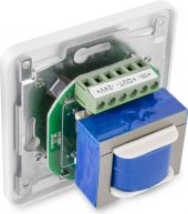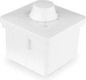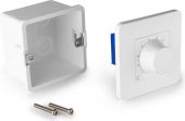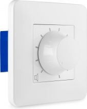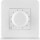 100V PA Volume controller 12W with stylish ABS white front plate for both flush-mounting and surface-mounting. (plastic surface-mounted box is included) Fits in a standard flush-mounted box, at least 50mm deep.