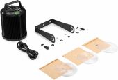 | Product colour | Black | | Light source | 5-in-1 LED | | Colours | Red, Green, Blue, Amber, Lime | | LED power (single LED) | 150W | | Quantity of LEDs | 1 | | Beam angle | 80° (Lenses 35°, 45°, 60°) | | Illuminance | 30.498lx @ 1m | | Flash rate per second | 1 - 25Hz | | DMX channels | 1, 3, 5, 7, 10, 12, 13, 16, HSV Channels | | DMX connection | 5-pin XLR | | Modes | Automatic programs, DMX, Master/Slave | | IP rating | IP20 | | Cooling | Convection | | Display | oLed | | Power plug | P-Con TR1 | | Power consumption | 1.298 - 0.637A | | Power supply | 100-240VAC 50/60Hz | | Dimensions (L x W x H) | 345 x 265 x 200mm | | Weight (kg) | 5,10 | | Included accessories | Mounting bracket, Power cable |
