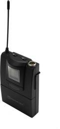 | Type: | Bodypack with microphone | | Power consumption: | 0.42 W | | Frequency band: | UHF 823 - 832 MHz; UHF 863 - 865 MHz | | Switching bandwidth: | 11 MHz | | Parallel mode: | Max. 8 transmitter | | RF power output: | 10 mW | | Modulation: | FM | | Frequency selection: | 90 switchable frequencies In 10 groups with up to 10 preset frequencies each | | Weight: | 0.11 kg | | Transmitter | | | Power supply: | 3V DC | | Power connection: | Battery/battery pack | | Battery: | 2 x Mignon (AA) (not included) | | Range: | Range up to 80m | | Control elements: | Transmitter power switch (high-low) | | Switch: | On/off switch; Mic/Ins switch | | Material: | Plastic | | Color: | Black | | Dimensions: | Width: 6.5 cm Depth: 2.5 cm Height: 9.5 cm | | Weight: | 0.086 kg | | Microphone | | | Type: | Lavalier microphone | | Cable length: | 1.20 m | | Capsule type: | Electret | | Polar pattern: | Cardioid | | Frequency range: | 60 - 12000 Hz | | Sensitivity: | -42 dB | | Connector type: | Mini XLR (F) 4-pin | | Material: | Metal | | Weight: | 0.020 kg |     |  |  |  | |