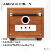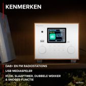 BT streaming, USB, FM radio, DAB+ radio, Line input