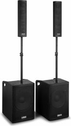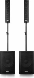 The VX1080BT is a complete plug & play speaker kit. Everything needed to get started is supplied on delivery. All the power comes from the single 15" subwoofer that houses the amplifier, both tops and the passive subwoofer are connected to the amplifier unit. The built-in BT receiver allows you to simply stream your music wirelessly from your smartphone, or you can use the built-in MP3 player with USB and SD slots.