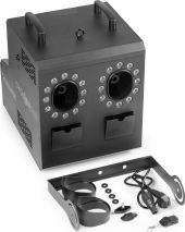 | Product colour | Black | | Heat-up time (minutes) | 3 | | Output volume per minute | 250m³ | | Tank capacity | 2x 1.2l | | Light source | 4-in-1 LED | | Colours | Red, Green, Blue, White | | Quantity of LEDs | 24 | | Modes | Automatic programs, DMX, Manual | | DMX channels | 11 | | DMX connection | 3-pin XLR, 5-pin XLR | | Power supply | 100-240VAC 50/60Hz | | Dimensions (L x W x H) | 480 x 360 x 440mm | | Weight (kg) | 9,90 | | Included accessories | Remote control (wireless), Power cable |