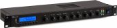 | Product colour | Black | | Playback options | BT 5.0 streaming, USB, DAB+ radio, Line input, Microphone (input) | | Frequency response | 100Hz - 20.000Hz | | THD | <2% | | Signal-to-noise ratio: Mic | >80dB | | Signal-to-noise ratio: Line | >80dB | | Output level: Nominal | 0dBV | | Input connections | 3.5mm Jack, RCA, USB, XLR (3-pin) | | Output connections | RCA, Screw terminal, XLR (3-pin) | | Output channels | 2 | | Output power: RMS | 60W | | Power supply | 100-240VAC 50/60Hz | | Is the item 19"? | Yes | | Dimensions (L x W x H) | 135 x 483 x 45mm | | Weight (kg) | 1,90 | | Included accessories | Remote control (wireless), Power cable | pdf