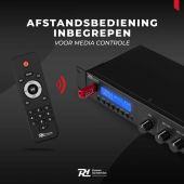 |  | The PDC90 is a compact stereo media player with a built-in class-D amplifier. This All-in-one player is equipped with a DAB+ tuner, a USB slot and a BT receiver to stream music directly from your smartphone/tablet to the player. The front features a 3.5 mm auxiliary input and the back is equipped with 3 balanced inputs with phantom power that can be adjusted with Mic/Line dip switches and 2 unbalanced RCA stereo inputs. - Multifunctional media player with Class-D amplifier