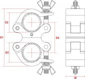 | Produktfarge | Aluminium | | Materiale | Aluminium | | D1 (1mm) | 144mm | | D2 (1mm) | 48 - 51mm | | D4 (1mm) | 78mm | | W (1mm) | 50mm | | Gjengebolt | M10 | | Maks. vektbelastning per stykke | 500kg | | Vekt (kg) | 1,00 |