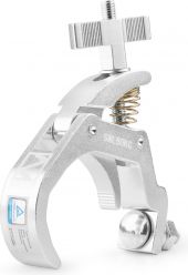 Denne raske utløserklemmen er konstruert av støpt aluminium og egnet for montering av rør og truss-fester. Den har en kjeveåpning som passer til et bredt spekter av ulike rørsystemer. Håndtaket på den raske utløserklemmen er plassert i en lett tilgjengelig horisontal posisjon, slik at brukeren kan feste koblingen uten å krysse truss-stiver. Det ergonomiske store håndtaket beskytter brukerens håndflate mot den hindrende bolten. - Robust aluminiumsklemme