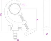 | Produktfarge | Svart | | D1 (1mm) | 130mm | | D2 (1mm) | 32 - 63mm | | D3 (1mm) | 10mm | | D4 (1mm) | 92mm | | W (1mm) | 22mm | | Gjengebolt | M10 | | Maks. vektbelastning per stykke | 50kg | | Vekt (kg) | 0,30 |