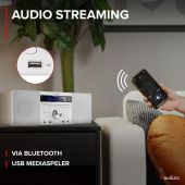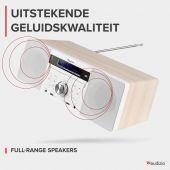 The Prato Music System is an all-in-one digital music system for the highest demands. This DAB+/FM Radio with slot-loading CD player is made of a high quality wooden case with rounded corners and reproduces the music fantastically, thanks to the full range stereo speakers. The Prato series offers the highest sound quality and is ideal for use in living room, kitchen, bedroom or office. With BT Wireless Technology 5.3, play music directly from your smart phone, tablet or PC.