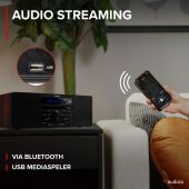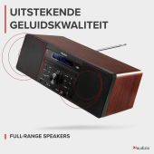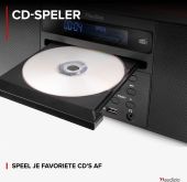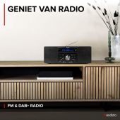 Prato Musikk System er et alt-i-ett digitalt musikksystem for de høyeste kravene. Denne DAB+/FM-radioen med spalteinnlasting av CD-spiller er laget av et høykvalitets trekk med avrundede hjørner og gjengir musikken fantastisk, takket være de fullspektrede stereohøyttalerne. Prato-serien tilbyr den høyeste lydkvaliteten og er ideell for bruk i stue, kjøkken, soverom eller kontor. Med BT Wireless Technology 4.0 kan du spille musikk direkte fra smarttelefonen, nettbrettet eller PC-en din.