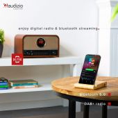Salerno musikksystemet har et klassisk vintage-utseende og er utstyrt med den nyeste digitale teknologien. Lytt til din favorittmusikk via den innebygde DAB+ tuner som garanterer krystallklar avspilling av ulike digitale radiostasjoner, eller bruk FM-radioen når du er utenfor de digitale overføringsområdene. Det er også mulig å strømme musikk trådløst via BT eller lytte til musikken din på CD, MP3 eller USB. Den klassiske valnøttre-looken i kombinasjon med de stilige krom-akkentene vil gi et snev av stil til ethvert hjem.
