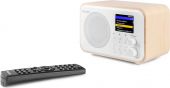 | Product colour | White | | Playback options | BT 5.0 streaming, DAB+ radio, Internet radio | | Output connections | 3.5mm Jack | | Output power | 30W | | Battery | 3.7V - 2Ah | | Power supply | 5V via USB | | Dimensions (L x W x H) | 186 x 120 x 115mm | | Weight (kg) | 0,89 | pdf