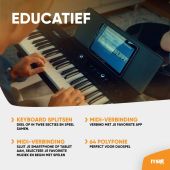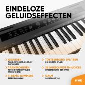 Effect control: Transpose, Octave, Reverb (10 levels) and Keyboard split