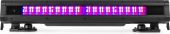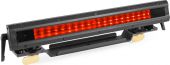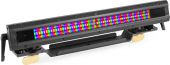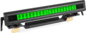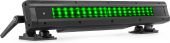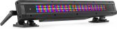 | Product colour | Black | | Light source | Single colour LED | | Colours | Red, Green, Blue | | LED power (single LED) | 1W | | Quantity of LEDs | 54 | | Beam angle | 60° x 10° | | Illuminance | 18.685 lx @ 0.5m | | Flash rate per second | 1 - 20Hz | | DMX channels | 3, 5, 8, 13 | | DMX connection | 3-pin Screw Connector | | Modes | Automatic programs, DMX, Manual, Master/Slave | | IP rating | IP65 | | Cooling | Convection | | Display | oLed | | Power plug | Fixed power lead | | Power consumption | 0.44 - 0.222A | | Power supply | 100-240VAC 50/60Hz | | Dimensions (L x W x H) | 426 x 53 x 90mm | | Weight (kg) | 2,65 | | Included accessories | Remote control (wireless), Mounting bracket, Power cable, DMX cable |