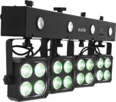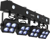 Bar with 4 RGBW spots and 4 white strobe LEDs, with QuickDMX connector (XLR)