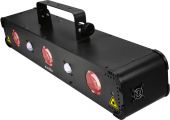 | Power supply: | 100-240 V AC, 50/60 Hz | | Power consumption: | 35 W | | IP classification: | IP20 | | Protection class: | Protection class I | | Power connection: | Mains input via IEC connector (M) mounting version power supply cord with safety plug (provided) | | Power output: | 1 x IEC connector (F) mounting version | | Fuse: | 5 x 20 mm, T 1 A fuse replaceable | | Lamp type: | LED lamp | | DMX channels: | 2; 5; 10 | | DMX input: | 1 x 3-pin XLR (M) mounting version | | DMX output: | 1 x 3-pin XLR (F) mounting version | | Cooling: | Cooling fan | | Control: | Stand-alone; DMX; sound to light via microphone; master/slave function; IR remote control | | Preprogrammed in: | LED PC-Control 512; Light Captain | | Housing color: | Black | | Attachment system: | Mounting bracket | | Display type: | Monochrome 4 digit 7-segment LED display | | Dimensions: | Length: 76 cm Depth: 18 cm Height: 24.5 cm | | Weight: | 5.50 kg | | Noise classification: | Class 3 (clearly perceptible sounds) | | Remote control | | | Battery: | 1 x button cell 3.0 V CR2025 lithium manganese built-in | | Laser | | | Laser class: | 2M | | Laser color: | R/G | | Laser module: | Red (R) 100 mW 650nm Green (G) 30 mW 532nm | | Spotlight | | | LED type: | 2 x 3 W SMD 8072 ultra violet (UV) | | Light effect | | | LED type: | 192 x 5 mm R/G/B/W/A | | Strobes | | | LED type: | 36 x 0.5 W SMD 2835 cold white (CW) |