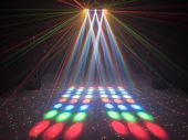 |  | Lighting effect with RGBAW LED matrix, UV, RG laser (class 2M) and stroboscope Lichteffekt mit RGBAW-LED-Matrix, Schwarzlicht, RG-Laser (2M) & Stroboskop - Matrix effect with a total of 192 LEDs generates countless moving colourful dots in the room