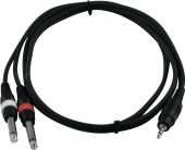 | Cable construction: | Audio cable | | Cable length: | 1,5 m | | Plug A: | 1 x 3.5 mm jack (stereo) | | Plug B: | 2 x 6.3 mm jack (mono) | | Color: | Black | | Weight: | 90 g | |  |  |  | |
