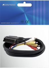 |  | | Cable length: | 1,5 m | | Plug A: | 1 x scart connector | | Plug B: | 6 x RCA (M) | | Color: | Black | | Weight: | 210 g | |  |  |  | |