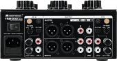 | Power supply: | 100-240 V AC, 50/60 Hz | | Power consumption: | 6.5 W | | Protection class: | Protection class I | | Power connection: | Mains input via IEC connector (M) mounting version power supply cord with safety plug (provided) | | Frequency range: | 20 - 20000 Hz microphone 20 - 20000 Hz line 40 - 18000 Hz phono | | S/N ratio: | >77 dB phono >80 dB microphone >85 dB line | | THD: | Line <0.03 % at 1 kHz Phono <0.1 % at 1 kHz | | Gain: | Microphone 44 dB Line 20 dB Phono 60 dB to +75 dB | | Isolators: | Master Gain:- ∞ bis +9 Low/mid 300 Hz, 18db/oct , Butterworth Mid/high 4000 Hz, 18db/oct , Butterworth | | Control elements: | Power switch, source selector, crossfader, cue mix split function, tone control | | Status LED: | Power, master level meter, chanal source, CUE, microphone | | Connections: | Input: line via 2 x stereo RCA Input: line/phono via 2 x stereo RCA Input: microphone via 1 x 3-pin XLR Output: headphones via 1 x 6.3 mm jack socket (stereo) mounting version Output: rec. via 1 x stereo RCA Output: booth via 2 x 3-pin XLR Output: booth via 1 x stereo RCA Output: master via 2 x 3-pin XLR Output: master via 1 x stereo RCA | | Channels: | Input chanel: 2 x stereo with line-line/phono switch via RCA, channel control via rotary, 2-band tone control EQ, CUE switch, phono gain rotary, source selector Microphon chanal: 1 x mono via XLR, channel control via rotary dial, ON AIR switch Booth output: 1 x stereo via XLR or RCA, channel control via rotary dial Master output: 1 x stereo via XLR or RCA, channel control via rotary dial Headphones output: 1 x stereo via jack, channel control via rotary dial, cue mix split function | | Max. level: | Output: +22 dBu | | Material: | Metal | | Color: | Black | | Housing design: | Desktop console housing | | Dimensions: | Width: 19 cm Depth: 25 cm Height: 10.7 cm | | Weight: | 2.68 kg |