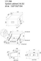 | Product colour | Black | | Cutout:Section 1 | 2U | | Cutout:Section 2 | 6U | | Cutout:Section 3 | 2U | | Dimensions (L x W x H) | 525 x 552 x 354mm | | Weight (kg) | 15,10 |