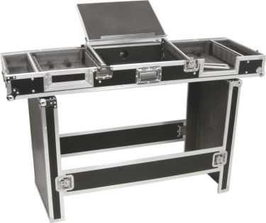 Robust 19" flykasse for 8U DJM-mikser, 2 CDJ-CD-spillere og lagring for 80 CD-er. Med en sammenleggbar panel utstyrt med hengsler for å plassere en bærbar datamaskin på den. Komplett med nedfelte hjul. - www.dw.dk/st