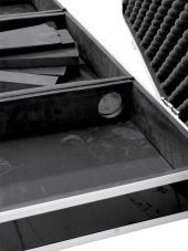 | Maximum load: | 25 kg | | Removable covers: | 1 pc/pcs | | Aluminum profile frames: | 25 mm | | Carrying handle: | 1 pc/pcs | | Lock: | Spring lock: 4 pc/pcs with shut-off function | | Transport aid: | Rubber feet | | Material: | Plywood multi-layer glued, 3 mm | | Color: | Black, laminated | | Outer compartment: | 26 cm x 43 cm x 8 cm | | Middle compartment: | 32 cm x 43 cm x 8 cm | | Front openings: | 18 cm x 6 cm | | Inside dimensions: | 84 cm x 43 cm x 8 cm | | Dimensions: | Width: 95 cm Depth: 46 cm Height: 15.5 cm | | Weight: | 6.75 kg |