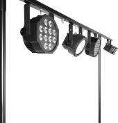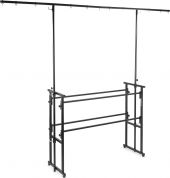 | Product colour | Black | | Material | Metal | | Dimensions (L x W x H) | 130 x 47 x 100 cm (stand) | | Dimensions: Boom | 2x 130cm (260cm) | | Dimensions: Folded | 130 x 47 x 100cm (stand) | | Dimensions: Max height | 210-240cm (T-bar) | | Max. weight load per piece | 40kg | | Weight (kg) | 15,20 |