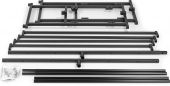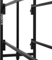 This all-in one pro disco stand is the ultimate stand for your DJ-equipment. It's easy and quick to set-up. The rails provides enough space for your DJ-equipment. The top rail is on an ideal working height, so perfect for placing your DJ-set. On the bottom rail you place other equipment like amplifiers, equalizers etcetera. The T-bar with adjustable height provides enough space for several light effects. - Mobile all-in one disco stand
